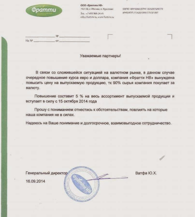 Октябрь - цены вверх! (письма от наших поставщиков)